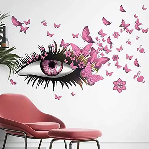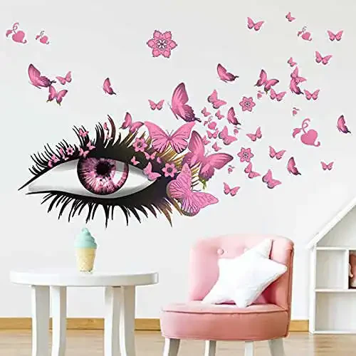 Ijodkor Chiroyli Qiz Ko'zlari Devorga Yopishtiruvchi - Pushti Uchib Yuruvchi Kapalak Devorga Yopishtiruvchi - Qiz Uzun Kirpiklar Yurak Dekori - Juft Sevishganlar Qizlar Yotoqxonasi Mehmonxona Dekoratsiyasi Uchun DIY San'at Vinil Devor Rasmi