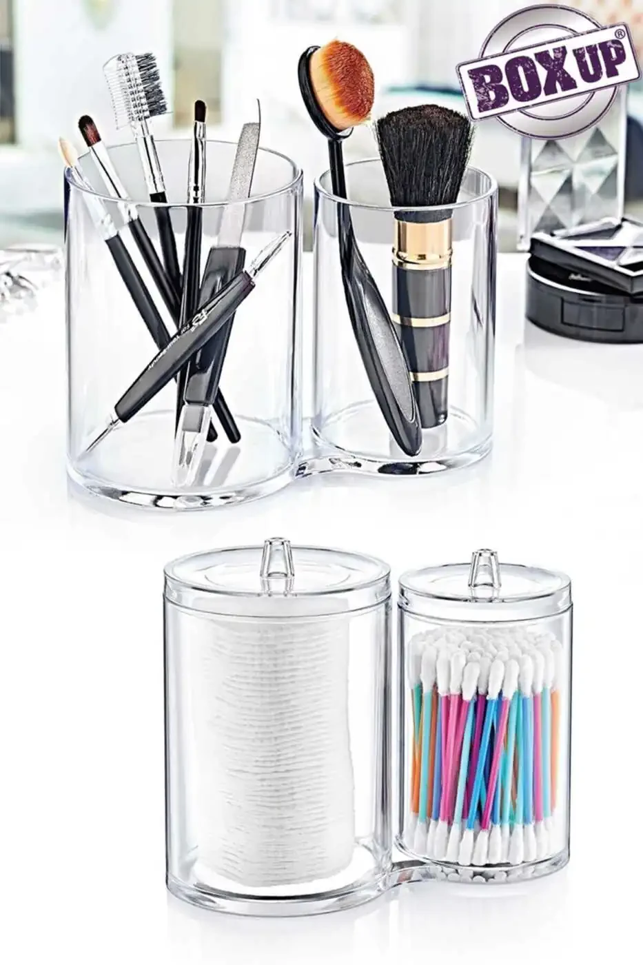 Makiyaj vositalaringizni tartibda va zamonaviy uslubda saqlash uchun ideal bo'lgan Ikki qavatli Akril Makiyaj Paxta Tartibga Solish Organayzeri, shaffof dizayni bilan sizga kerakli narsalarni osongina ko'rish imkonini beradi. Akrildan yasalgan organizer, bardoshli va uzoq muddat xizmat qiladi. Ikki bo'limli tuzilishi tufayli paxta padlaringizni, makiyaj cho'tkasizni, lab bo'yog'laringizni va boshqa makiyaj vositalaringizni alohida-alohida tartibga solishingiz mumkin.