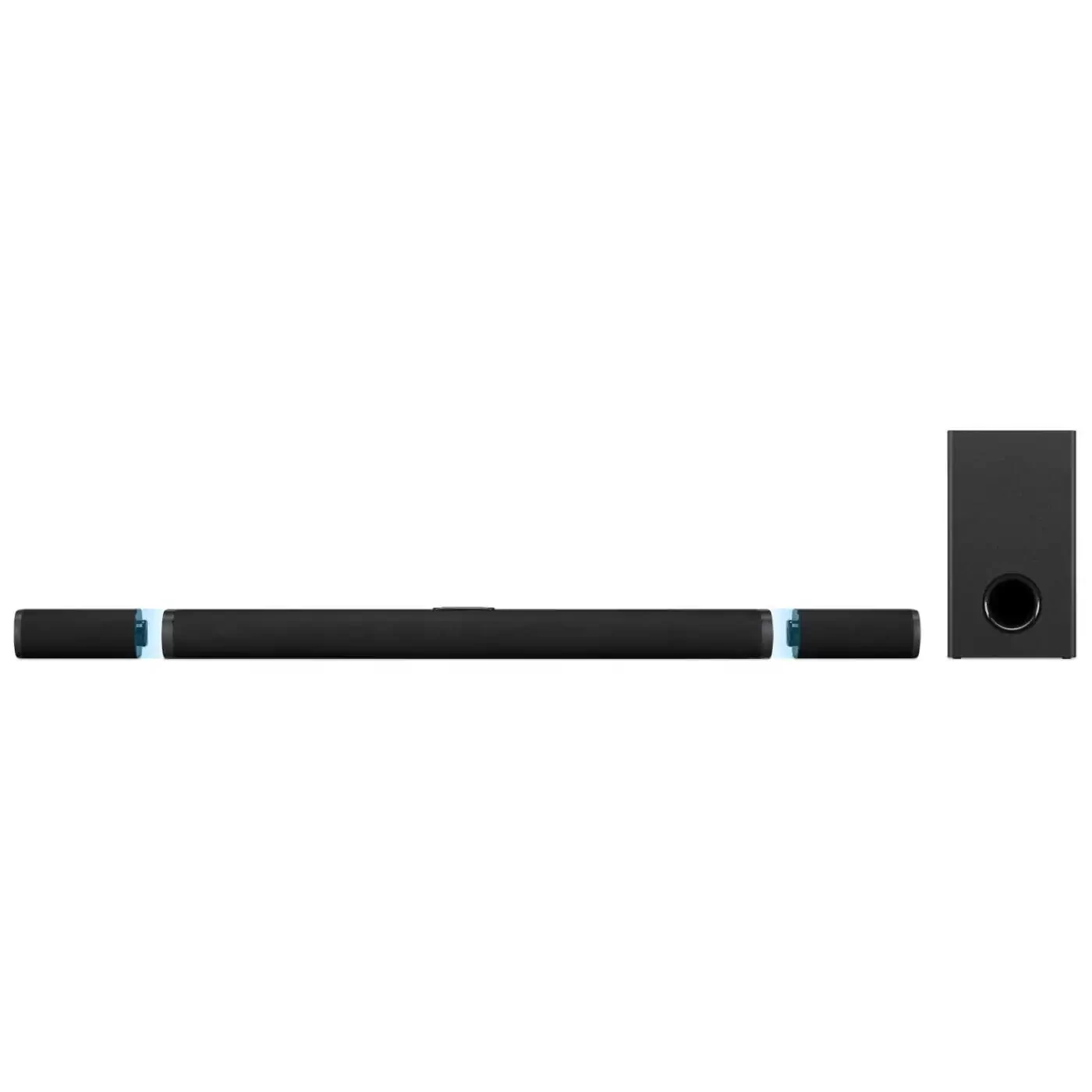 Treat yourself to a wireless sound immersion experience. This 4.1 channel powered speaker system with subwoofer enhances the dimensional effect of your audio tracks. Connect via Bluetooth 5.1, aux in, or HDMI for better sounding music streams, crisp movie dialog with velvety scores, and punchy game sound effects. The subwoofer packs a punch, delivering quality sound every time the bass kicks in. Feel free to place your speakers around your space without the hassle of wired connections. The soundbar satellite speakers can also detach for added control in shaping your soundscape.