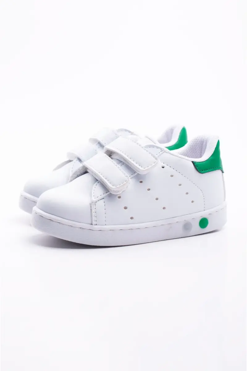 Ilk Adım Ayakkabısı Erkek Bebek Ilk Adım Ayakkabısı Ortopedik Tabanlı Ayakkabı Işıklı Ayakkabı-Beyaz Yeşil