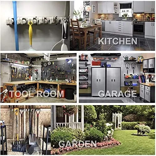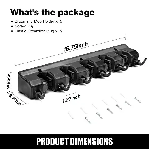 It's now very easy to maintain order in your home with the IMILLET Mop and Broom Holder! This practical wall-mounted organizer helps you organize your cleaning tools in a small area with its 5 ball slots and 6 hooks. No more cluttered corners, falling mops, and space-consuming brooms. The IMILLET Mop and Broom Holder is a versatile solution that you can use in every corner of your home, from your garage to your kitchen, from your garden to your laundry room. The special spring-loaded clip design ensures that your mops, brooms, rakes, and even stick vacuum cleaners remain securely hung. Even wet mops or heavy items are no problem. With its strong and robust construction, the IMILLET Mop and Broom Holder stands securely on your wall and allows you to store most tools in your home in an organized manner. Made of high-quality ABS material, it guarantees durability and long-lasting use. Thanks to the improvements made to our products after July 2018, falling problems have been eliminated and the products are held tightly. Thanks to its easy installation, you can start using it in a short time by following the detailed instructions in the package. It can be easily mounted on the wall with the included screws and anchors. The IMILLET Mop and Broom Holder is the most effective way to keep your home tidy and organize your cleaning tools. Now you can easily find what you're looking for, save space, and keep your home looking tidy at all times. Cleaning is now more enjoyable and more efficient with IMILLET!