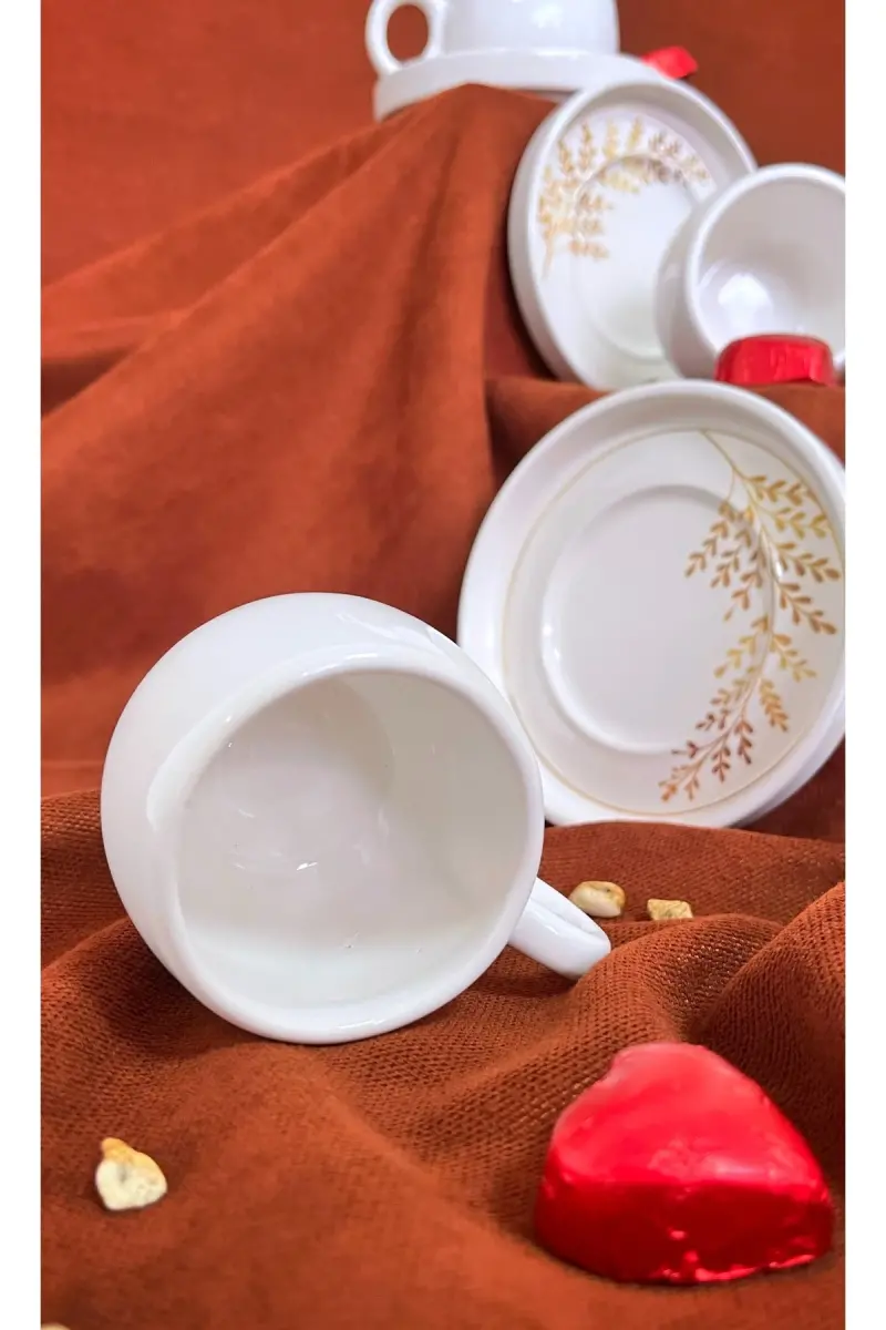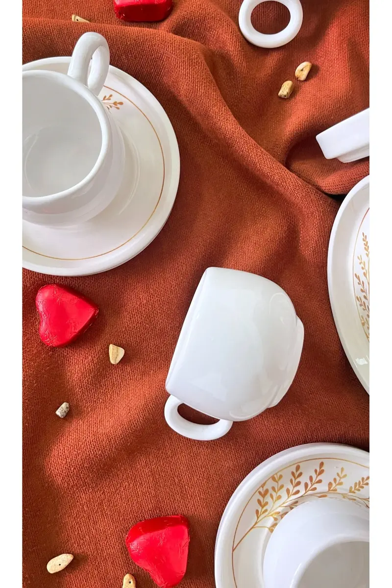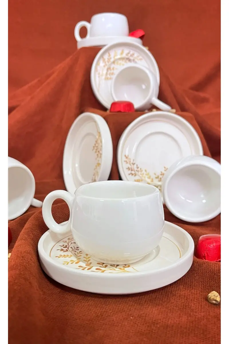 İndia 12 Parça Lüx Seramik Kahve Fincan Takımı, Beyaz Türk Kahvesi Fincanı-İndia Beyaz
