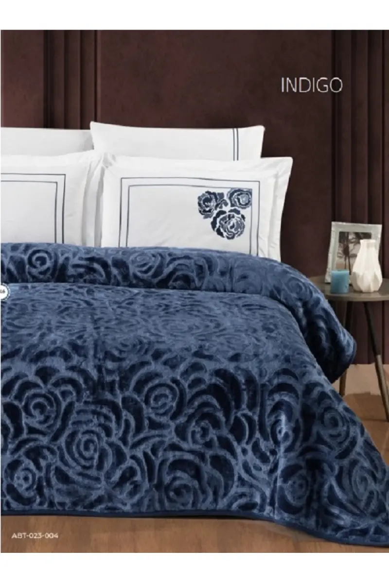 İndigo Mavi Çarşafı Pamuklu Battaniye Yatak Örtüsü Seti 6 Parça-SU YEŞİLİ