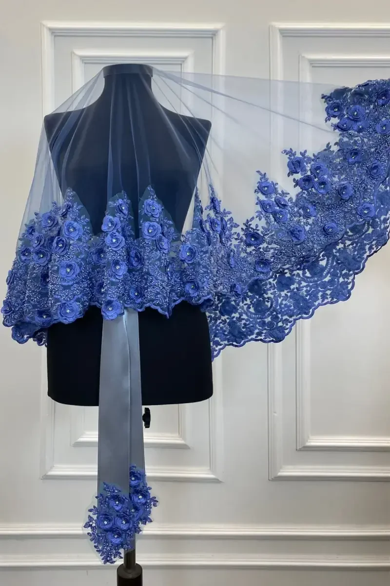 Индиго Синий Свадебный Фата Комплект, Фата для Хны, Vip Модель-Индиго Синий