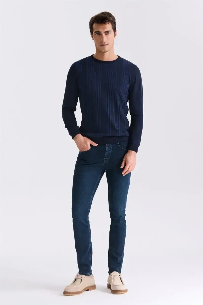 Indigo Patterned Knitted Sweater, Slim Fit Sweater, Modern Sweater, Stylish Sweater, Knitted Sweater