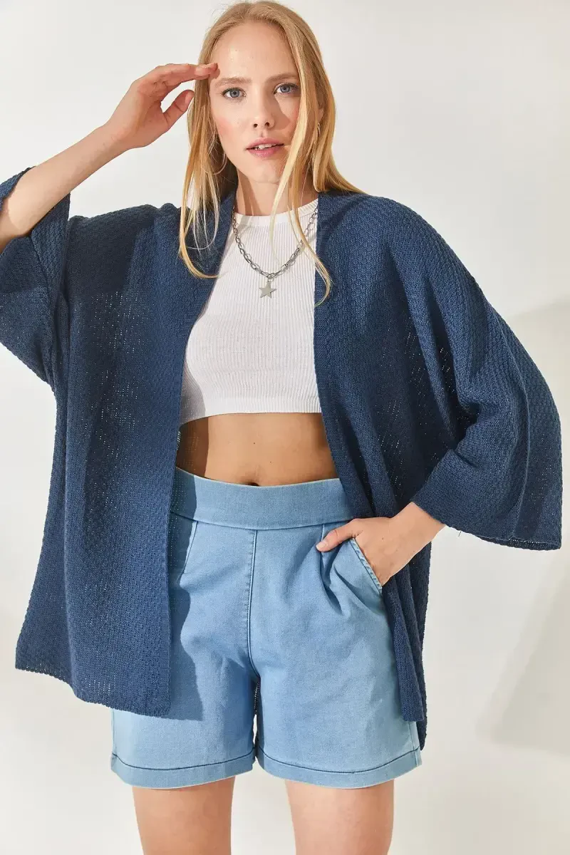 Indigo Yarasa Bahor Kardigan HRK-19000057-Indigo, olalook official tomonidan ehtiyotkorlik bilan tayyorlangan va bahor oylarining ajralmas qismiga aylanishga nomzod dizayndir. Nafislik va qulaylikni birlashtirgan ushbu kardigan zamonaviy ayolning garderobida bo'lishi kerak bo'lgan buyumdir. Sharf yoqasi dizayni kardiganga nafis teginish qo'shsa, yarasa yengi kesimi trend ko'rinishini taqdim etadi. Trikotaj to'quv texnikasi bilan ishlab chiqarilganligi kardiganning chidamliligini oshiradi va ayni paytda qulay foydalanish tajribasini ta'minlaydi.%50 paxta va %50 akril aralashmasidan tashkil topgan materiali teringizga yumshoq tegishni taklif etadi va kun bo'yi qulay bo'lishingizni ta'minlaydi. Paxta tarkibi tufayli nafas oladigan tuzilishga ega bo'lgan kardigan akril tufayli shaklini osongina saqlaydi va uzoq umr ko'rishni ta'minlaydi. Yupqa tuzilishi tufayli engil va qulay, sizda og'irlik qilmaydi va harakat erkinligingizni cheklamaydi.Asosiy to'plamning bir qismi bo'lgan ushbu kardigan soddalik va nafislikni birlashtiradi. Shu tarzda, u turli xil uslublar va kombinatsiyalarga osongina moslashadi. Kundalik foydalanishda ham, maxsus tadbirda ham, har qanday muhitda nafisligingizni to'ldiradigan buyumdir. Standart bo'y uzunligi turli xil tana turlariga moslashadi, shu bilan birga bo'shashgan siluet qulay foydalanishni ta'minlaydi.Uzoq yengli tuzilishi mavsum o'tishlarida ideal himoyani ta'minlaydi. Salqin bahor oqshomlarida yoki konditsionerli muhitda uni kiyib, ham chiroyli ko'rinishingiz, ham sovuqdan himoyalana olasiz. Tekis dizayni oddiy va zamonaviy ko'rinishga ega bo'lishingizni ta'minlaydi, indigo rangi bilan esa siz diqqatga sazovor uslub yarata olasiz.Indigo Yarasa Bahor Kardigan keng foydalanuvchilar doirasiga murojaat qiladi, bu barcha yosh guruhlariga murojaat qiladi. Yoshlar va kattalar tomonidan qadrlanadigan ushbu kardigan garderobingizning eng sevimli qismiga aylanishga nomzoddir. Akril materiali tufayli oson parvarish qilish imkoniyatini taqdim etadi. 1-toifa yuvish ko'rsatmalariga muvofiq tozalash orqali kardiganingizning uzoq umr ko'rishini ta'minlashingiz mumkin.Indigo Yarasa Bahor Kardigan bilan uslubingizni aks ettiring, qulaylik va nafislikdan rohatlaning! Ushbu kardigan shunchaki kiyim emas, balki ifoda shaklidir. O'zingizni maxsus his qilish va uslubingizni oldinga surish uchun ideal tanlovdir.