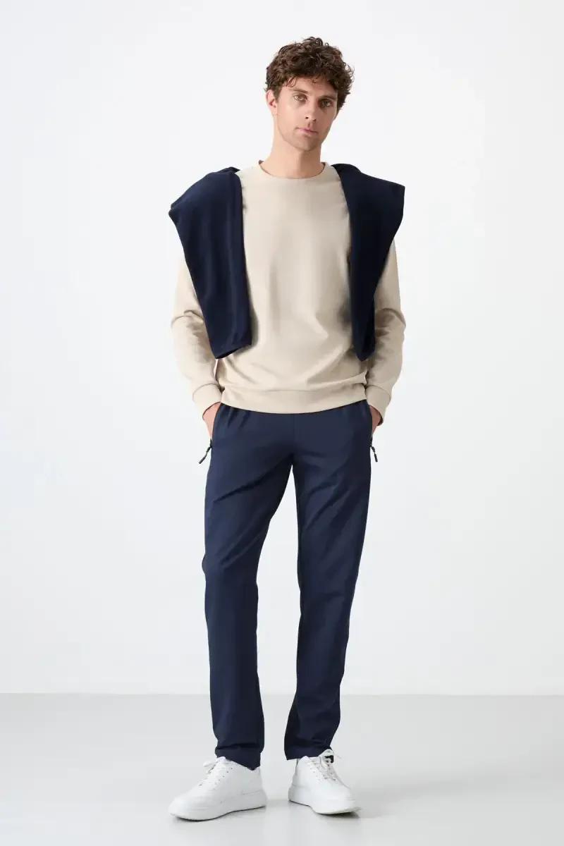 Combine your style and comfort with Indigo Zippered Three Pocket Slim Fit Classic Cut Men's Sweatpants. Offered with the assurance of TOMMYLIFE, these sweatpants are an ideal choice for men who prioritize elegance and comfort. With its slim fit and classic cut, it provides a modern look both in sports activities and in daily use. Thanks to its three zippered pockets, you can safely carry your phone, keys or wallet. Thanks to its high-quality fabric content, it offers long-lasting use. The blend of 80% cotton, 15% polyester and 5% elastane ensures that the sweatpants are soft, flexible and durable. It allows you to move comfortably throughout the day, while also helping you look stylish. You can reflect your style by creating different combinations. Whether you combine it with sneakers or a casual t-shirt, you will always look stylish. Indigo color adds a modern and sophisticated touch to the sweatpants. This color will easily match with different colors and become an indispensable part of your wardrobe. There may be slight differences in color tones due to the light used in the product's photo shoots. These sweatpants, produced with TOMMYLIFE quality, prioritize both your style and your comfort. This product is offered for sale at a discounted price and is limited in stock. In this product offered for sale by more than one seller, sellers are ranked according to price, score, delivery status, promotions and shipping options. You can order a maximum of 10 of this product. Orders over 10 may be canceled by Trendyol. This limit is not valid for corporate orders and different limits may be set for corporate orders. If you do not like the product, you can return it for free within 15 days. You can visit the relevant page for detailed information about return conditions. Enjoy being both stylish and comfortable with TOMMYLIFE Indigo Zippered Three Pocket Slim Fit Classic Cut Men's Sweatpants.