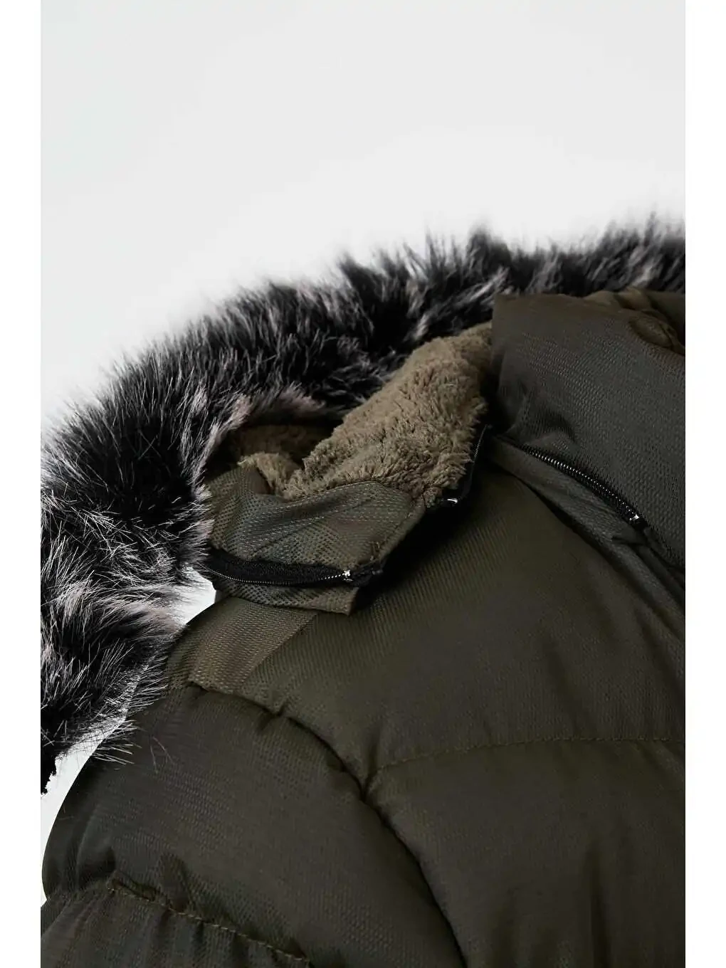 Slim Fit Suni Mo'yna Mo'ynali Chiqariladigan Kaputli Shishma Palto 5761080 B bilan qish faslini iliq va zamonaviy tarzda o'tkazing.