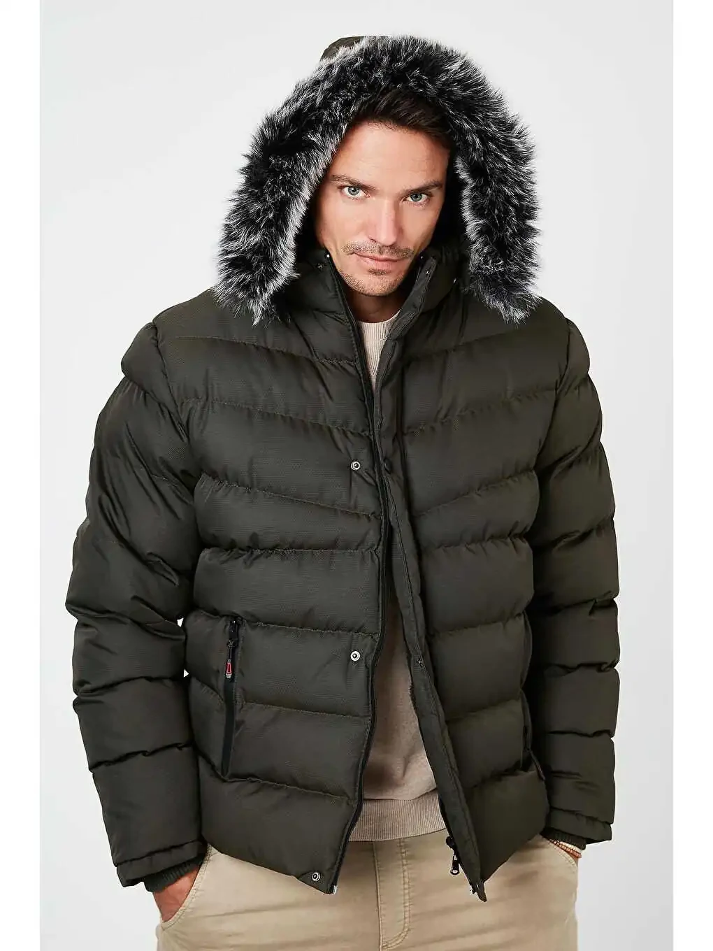 shishma palto, qishki palto, kaputli palto, jun astarli palto, sun'iy mo'yna, slim fit palto, ayollar paltosi, erkaklar paltosi, qishki kiyim, 5761080 B