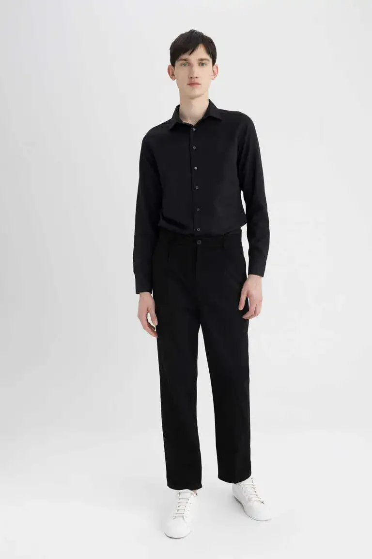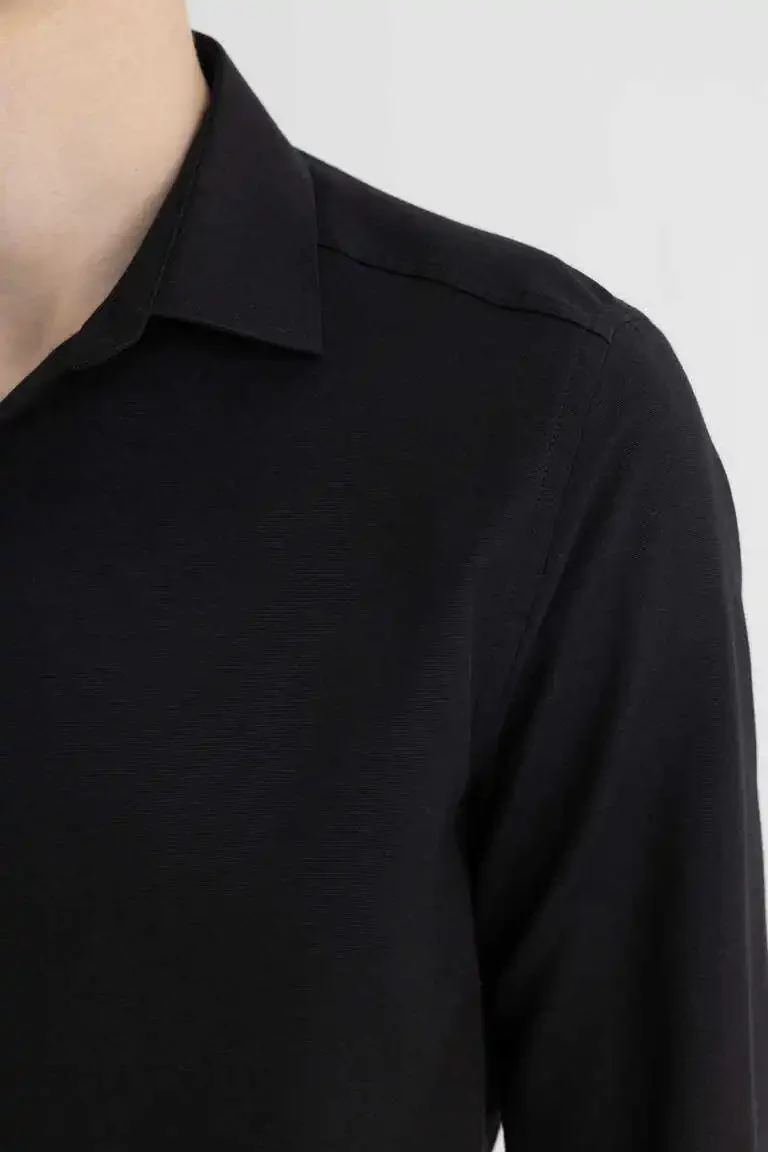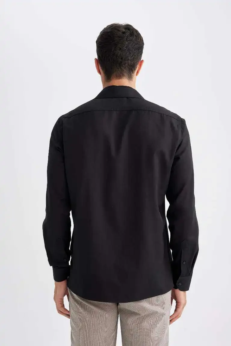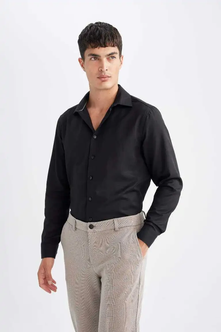 slim fit ko'ylak, polo yoqa, poplin ko'ylak, uzoq yengli ko'ylak, qora ko'ylak, erkaklar ko'ylagi, zamonaviy ko'ylak, qulay ko'ylak