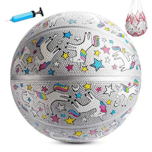 INPODAK Çocuk Basketbolu Gençlik Basketbolu 27.5 İnç Boyutu 5 Genç Kız Basketbolu Klasik Spor Topu Oyunu İç Mekan Dış Mekan Kız Çocuklar Gençler Noel Doğum Günü Hediyesi Pompa ve Ağı ile