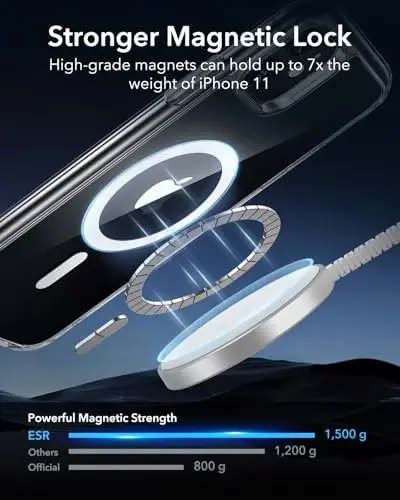 Защитите свой iPhone 11 и продемонстрируйте его стиль с помощью чехла ESR HaloLock, совместимого с MagSafe, разработанного специально для вашего устройства iPhone 11. Этот чехол сочетает в себе защиту от падений военного класса, мощную магнитную фиксацию и прозрачный дизайн, чтобы поднять ваш опыт работы с iPhone 11 на новый уровень. Чехол ESR HaloLock идеально облегает все контуры вашего iPhone 11 и защищает оригинальный дизайн вашего устройства, обеспечивая превосходную защиту от ударов, царапин и падений, возникающих при ежедневном использовании. Благодаря усиленным углам и приподнятым краям ваш экран и камера остаются в безопасности. Технология HaloLock обеспечивает безупречную совместимость с аксессуарами MagSafe благодаря мощным магнитам, встроенным в заднюю часть чехла. Легко размещайте на беспроводных зарядных устройствах и наслаждайтесь безопасной зарядкой. Магниты с удерживающей силой 1500 г надежно удерживают кошельки MagSafe, автомобильные держатели и другие аксессуары. Больше не нужно беспокоиться о скольжении или падении телефона во время беспроводной зарядки. Чехол ESR HaloLock не только обеспечивает защиту и функциональность, но и подчеркивает эстетику вашего iPhone 11. Прозрачная акриловая задняя панель позволяет продемонстрировать цвет и дизайн вашего телефона, а устойчивая к царапинам структура сохраняет новый вид чехла в течение длительного времени. Тонкий и легкий дизайн позволяет удобно носить телефон в кармане или сумке. Благодаря легкодоступным кнопкам и точным вырезам вы можете беспрепятственно использовать все функции своего iPhone 11. Специально разработанные отверстия для динамика, порта зарядки и камеры позволяют получить доступ ко всем функциям, не снимая чехол. Чехол ESR HaloLock станет незаменимой частью вашей повседневной жизни и всегда будет защищать ваш iPhone 11. Благодаря подробным видеороликам по установке, разделу часто задаваемых вопросов, комплексному плану защиты на 12 месяцев, пожизненной поддержке и персонализированной помощи, предлагаемым ESR, мы всегда будем рядом, если у вас возникнут какие-либо вопросы о вашем продукте. Если вы ищете идеальную защиту и стиль для своего iPhone 11, чехол ESR HaloLock, совместимый с MagSafe, — именно то, что вам нужно.