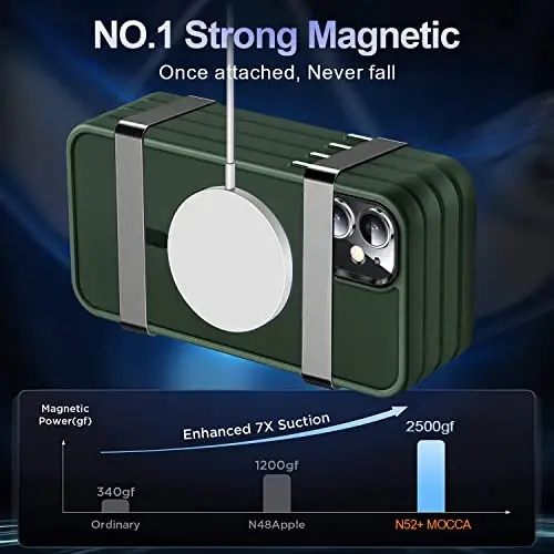 Mocca Strong Magnetic iPhone 11 g‘ilofi telefoningiz uchun yuqori darajadagi himoya va MagSafe mosligini birlashtiradi. Ushbu g‘ilof ayniqsa iPhone 11 6.1 dyuymli modeli uchun ishlab chiqilgan bo‘lib, qurilmangizni kundalik foydalanishning eskirishidan himoya qiladi, shuningdek, MagSafe aksessuarlaringiz bilan muammosiz ishlaydi. Ichida joylashgan o‘rnatilgan magnit halqasi tufayli u simsiz zaryadlovchi qurilmalar, magnitli avtomobil ushlagichlari, magnitli batareya paketlari va magnitli hamyonlar kabi ko‘plab MagSafe aksessuarlari bilan mos keladi. Zaryad qilish uchun telefoningizni zaryadlovchiga qo‘yishingiz kifoya; g‘ilofni yechishingizga hojat yo‘q. Mocca iPhone 11 g‘ilofi 38 dona N52+ super magnitni o‘z ichiga oladi va magnit tortish kuchi 2500GF ga yetadi. Bu oddiy g‘iloflarga nisbatan 7 barobar kuchliroq magnit birikmasini anglatadi. Shunday qilib, zaryad olayotganda telefoningizni qanchalik silkitmang, tushib ketish xavfi yo‘qoladi. Kuchli magnit strukturasi MagSafe aksessuarlarining xavfsiz ulanishini va joyida qolishini ta’minlaydi. Yangilangan tushishdan himoya qilish tufayli Mocca iPhone 11 g‘ilofi SGS va ROHS tomonidan tasdiqlangan harbiy darajadagi himoyani taklif etadi. Ko‘p qatlamli tampon tuzilishi tashqaridan keladigan zarbalarni o‘zlashtirib, telefoningizni eng yaxshi tarzda himoya qiladi. U 8000 ta harbiy standart tushish testidan muvaffaqiyatli o‘tdi, bu esa telefoningizning xavfsiz ekanligini isbotlaydi. Ekran va kamera qirralaridagi ko‘tarilgan ramkalar (1,5 mm) iPhone 11 kamerasini va ekranini to‘g‘ridan-to‘g‘ri sirtlarga tegishi natijasida yuzaga kelishi mumkin bo‘lgan chizilishlardan himoya qiladi. Band bo‘lgan turmush tarziga ega foydalanuvchilar uchun mo‘ljallangan ushbu to‘plam sizga kerak bo‘lgan barcha himoyani bitta paketda taqdim etadi. Boshqa aksessuarlarni qidirishingizga hojat qolmasdan, telefoningiz uchun to‘liq himoya olishingiz mumkin. Paket tarkibiga 1 dona yarim shaffof matli g‘ilof, 1 dona 9H temperli shisha ekran himoyachisi va 1 dona yuqori aniqlikdagi kamera linzalari himoyachisi kiradi. iPhone 11 6.1 dyuymli modeliga mukammal mos keladi. Iltimos, sotib olishdan oldin telefon modelini tasdiqlang.