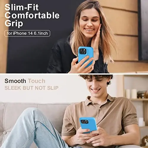 Vooii Compatible with iPhone 14 Case,[Silky Touch Premium Liquid Silicone] [Soft Anti-Scratch Microfiber Lining], Ultra Slim Shockproof Protective Case for iPhone 14 - Blue