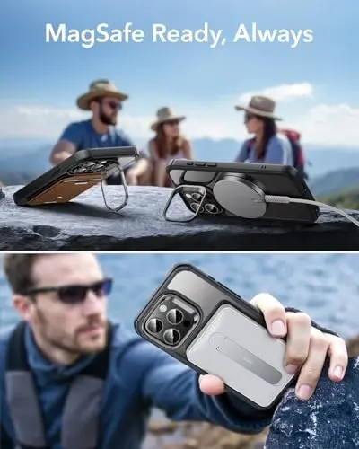 ESR for iPhone 14 Pro Max Case with Stand - bu sizning qurilmangizni kundalik hayot qiyinchiliklaridan to'liq himoya qilish uchun mo'ljallangan ajoyib g'ilofdir. Ushbu g'ilof shunchaki himoya aksessuari bo'lishdan tashqari, iPhone 14 Pro Max tajribangizni boyitadigan xususiyatlar bilan jihozlangan. Shaffof qora dizayni telefoningizning asl go'zalligini namoyish etadi, harbiy darajadagi qulash testlaridan muvaffaqiyatli o'tgan chidamlilik esa qurilmangiz xavfsizligiga ishonch hosil qilishingizga yordam beradi. To'liq korpusni himoya qilish, chizishga chidamli akril orqa yuzasi, zarbani yutuvchi Air Guard burchaklari va changdan himoya qiluvchilari bilan telefoningizni har qanday shikastlanishdan himoya qiladi. Ichki 9H+ temperlangan shisha ekran himoyachisi ekranni chizish va zarbalardan himoya qiladi, shu bilan birga sensorli sezgirlikka ta'sir qilmaydi. Bundan tashqari, mahsulot bilan birga keladigan alohida temperlangan shisha kamera linzalari himoyachilari kamera linzalarini xavfsiz saqlaydi. O'rnatilgan Stash Stand portret va landshaft rejimlarida 15° dan 85° gacha sozlanishi burchaklar bilan qo'llarsiz ko'rish imkoniyatini beradi. FaceTime qo'ng'iroqlarini amalga oshirayotganda yoki sevimli seriallaringizni tomosha qilayotganda qulayligingizni oshiradi. To'liq sink qotishmasidan yasalgan va korroziyaga chidamli mat yuzaga ega bo'lgan Stash Stand uzoq umr ko'rish uchun mo'ljallangan. Magnit halqasi MagSafe bilan mos kelishini 100% qo'llab-quvvatlaydi va 1500 g ushlab turish quvvati bilan barcha rasmiy va ESR MagSafe zaryadlovchi qurilmalari va aksessuarlari bilan xavfsiz ulanishni ta'minlaydi. Shu tarzda, u zaryadlash jarayonini osonlashtiradi va uzluksiz tajribani taqdim etadi. ESR mijozlar ehtiyojini qondirishni eng yuqori darajada ushlab turishni maqsad qiladi. Batafsil o'rnatish videolari, tez-tez so'raladigan savollar (SSS), keng qamrovli 12 oylik himoya rejasi, umrbod qo'llab-quvvatlash va shaxsiylashtirilgan yordam bilan har doim siz bilan birgamiz. ESR for iPhone 14 Pro Max Case with Stand bilan qurilmangizni himoya qiling, shu bilan birga o'z uslubingizni aks ettiring.