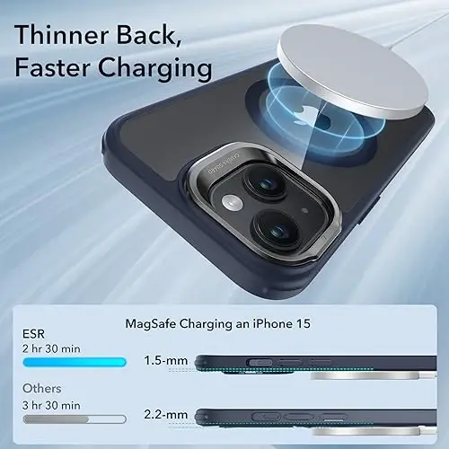 Представляем чехол ESR Classic Series, который сочетает в себе превосходную защиту и стиль для вашего iPhone 15. Этот чехол предлагает комплексное решение для вашего телефона благодаря совместимости с MagSafe, защите военного класса, встроенной подставке для хранения и устойчивой к царапинам задней панели. Прозрачный темно-синий цвет сохраняет оригинальный дизайн вашего телефона, придавая ему элегантный вид. Благодаря мощным магнитам вы можете безопасно использовать аксессуары MagSafe, а регулируемая подставка позволяет удобно смотреть видео где угодно. Чехол ESR Classic Series защищает ваш iPhone 15 от рисков повседневного использования и предлагает функции, которые облегчат вашу жизнь. Он разработан для максимального увеличения стиля и функциональности вашего телефона. Превосходное качество материалов и внимание к деталям обеспечивают длительный срок службы. Этот чехол обеспечивает эффективную защиту от ударов, царапин и падений, помогая вашему телефону всегда выглядеть как новому. Сохраняйте свой iPhone 15 в безопасности с ESR Classic Series, не жертвуя своим стилем. Вы можете с комфортом использовать свой телефон в течение дня, беспрепятственно взаимодействовать со своими аксессуарами MagSafe и наслаждаться приятным просмотром в любое время благодаря встроенной подставке. Этот чехол – не просто защитный, он станет незаменимой частью вашего телефона.