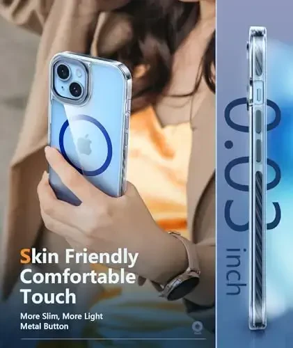 FNTCASE iPhone 15 Plus Kılıfı, iPhone 14 Plus ile de uyumlu, manyetik özellikli ve askeri sınıf düşme korumasına sahip dayanıklı, tam gövde koruyucu bir kılıftır. 6.7 inç ekran boyutuna sahip telefonlar için özel olarak tasarlanmıştır. Bu kılıf, telefonunuzu günlük kullanımın getirdiği risklere karşı kapsamlı bir şekilde korur. Şeffaf tasarımı, telefonunuzun orijinal rengini ve estetiğini korurken, güçlendirilmiş manyetik özelliği sayesinde kablosuz şarj ve diğer manyetik aksesuarlarla sorunsuz bir uyum sağlar.FNTCASE, iPhone 15 Plus'ınızı çiziklerden, darbelerden ve düşmelerden korurken, aynı zamanda şık ve kullanışlı bir deneyim sunar. Kılıfın hassas kesimleri, tüm bağlantı noktalarına, düğmelere, kameralara ve sensörlere kolay erişim imkanı tanır. Bayer'in ultra şeffaf TPU ve PC malzemesi kullanılarak üretilen bu kılıf, sararmaya karşı yüksek direnç gösterir ve telefonunuzun uzun süre yeni gibi görünmesini sağlar. Güçlü mıknatısları sayesinde kablosuz şarj cihazları, cüzdanlar ve araç tutucularıyla güvenli bir bağlantı kurar.Askeri sınıf düşme testlerinden başarıyla geçen bu kılıf, 10 feet'e kadar olan düşmelere karşı etkili koruma sağlar. Sert polikarbonat arka panel ve esnek TPU tamponlar, darbeyi emerek telefonunuzun zarar görmesini engeller. Köşelerde bulunan hava yastıkları, ekstra koruma sağlayarak telefonunuzun düşme anındaki etkisini azaltır. Yükseltilmiş kenarlar, ekranı ve kamera lensini çizilmelere karşı korur. İnce ve hafif tasarımı, telefonunuza ekstra hacim katmaz ve cebinizde rahatça taşınabilir. FNTCASE, iPhone 15 Plus'ınız için mükemmel bir koruma ve stil kombinasyonu sunar.
