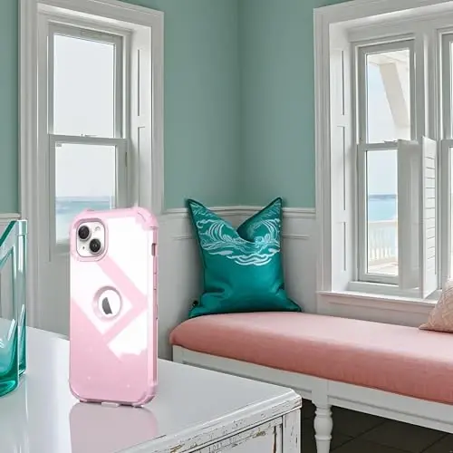 iPhone 15 Plus kılıfı, ekran koruyuculu kılıf, darbeye dayanıklı kılıf, ince kılıf, hybrid kılıf, ağır hizmet kılıfı, sert PC kapak, yumuşak silikon tampon, tam gövde kılıfı, simli pembe kılıf