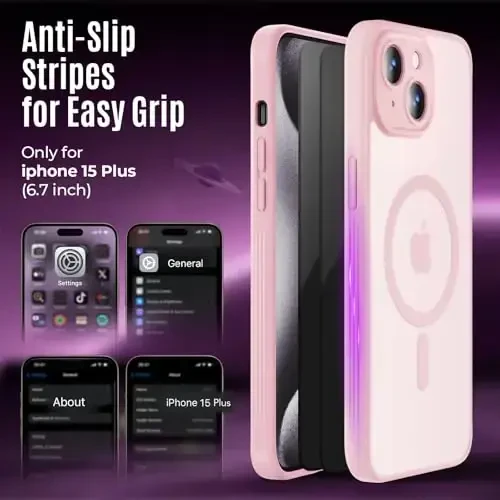 iPhone 15 Plus G‘ilofi: Kamera himoyalangan, Maxfiylik ekranli, MagSafe mos, Pushti, Symcele