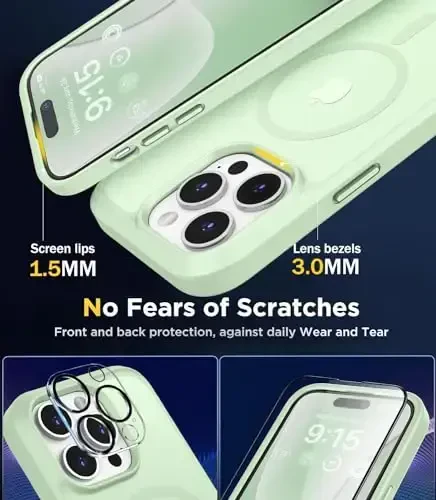 iPhone 15 Pro gʻilofi, MagSafe, himoya, magnitli, yarim shaffof, mat, och yashil, ayol, erkak, zarba
