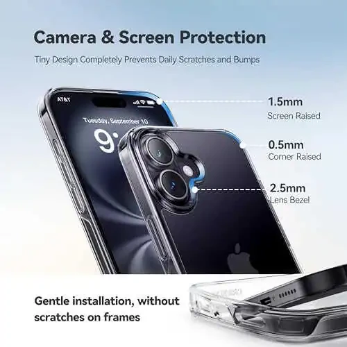iPhone 16 case, clear case, CASEKOO, drop protection, anti-yellowing, wireless charging, slim case, military grade, crystal clear, U-SHOCK airbag