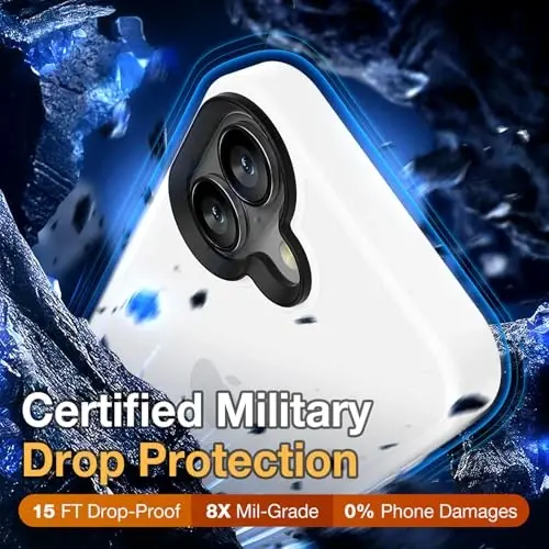 Yriklso iPhone 16 uchun telefon g'ilofi, iPhone 16 uchun zarbga chidamli g'ilof, harbiy standartga mos tushishdan himoya, iPhone 16 6.1" uchun himoya qattiq yupqa shaffof g'ilof, oq