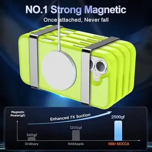 MOCCA Strong Magnetic iPhone 16 g'ilofi, Fluorescent Green rangi bilan uslubingizni aks ettirar ekan, iPhone 16 uchun yuqori himoya ta'minlaydi. Umr bo'yi almashtirish kafolati bilan qo'llab-quvvatlangan ushbu g'ilof, Magsafe mosligi, kuchli magnit tuzilishi va harbiy sinf tushishdan himoya qilish bilan ajralib turadi. Yupqa va engil dizayni tufayli telefoningizning asl ko'rinishini saqlaydi. MOCCA, mijozlar ehtiyojini eng yuqori darajada qondirishni maqsad qiladi va ushbu g'ilof, iPhone 16 foydalanuvchilari uchun mukammal tanlovdir.