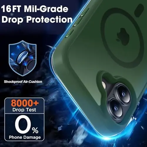 iPhone 16 gʻilofi, Magsafe, magnitli, himoya, tushish testi, harbiy sinf, chizilishga chidamli, tun yarmi yashili, 6.1 dyuym, aksessuar