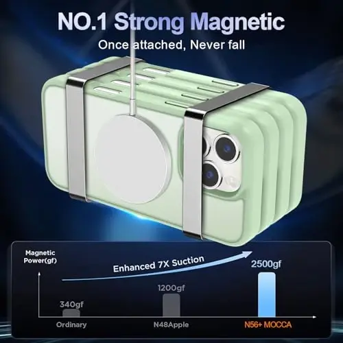 Представляем вам чехол MOCCA Strong Magnetic, специально разработанный для вашего iPhone 16 Pro. Этот чехол не только идеально подходит для вашего устройства, но и обеспечивает безупречную совместимость с аксессуарами MagSafe. Благодаря мощным магнитам он надежно удерживает ваш iPhone 16 Pro, обеспечивая быструю зарядку мощностью до 20 Вт и сводя к минимуму энергопотребление. Чехол MOCCA оснащен 38 лучшими в отрасли сверхмощными магнитами N56. Эти магниты создают безупречную магнитную матрицу, обеспечивающую магнитное усилие в 2500GF. Это в семь раз сильнее, чем у обычных чехлов. Независимо от того, идете ли вы быстрыми шагами или едете по ухабистым дорогам, чехол MOCCA гарантирует, что ваш iPhone всегда будет в безопасности и надежно закреплен. Вам не нужно беспокоиться о безопасности. Чехол MOCCA для iPhone 16 Pro сертифицирован SGS и ROHS и имеет многослойную структуру амортизации. Эта структура поглощает даже самые сильные удары, защищая ваше устройство. Он успешно прошел более 8000 испытаний на падение по военному стандарту и обеспечивает превосходную устойчивость к падениям. Таким образом, ваше устройство будет в безопасности даже при случайных падениях. Не только долговечность, но и защита экрана и камеры имеют первостепенное значение. Приподнятые края экрана и камеры (1,5 мм) защищают ваш iPhone от царапин, возникающих при прямом трении при размещении на поверхности стола. Таким образом, ваш экран и камера всегда остаются как новые. Этот эргономичный чехол идеально облегает ваш телефон и защищает его от пыли, царапин, отпечатков пальцев и пятен. Обеспечивает чистый и уверенный опыт использования одной рукой. Благодаря приятной для кожи текстуре он отталкивает отпечатки пальцев и жир. Остается чистым в течение длительного времени благодаря технологии Nano-Oleophobic. В MOCCA мы поддерживаем наш продукт и предлагаем пожизненную гарантию замены вашего чехла для iPhone 16 Pro. Ваше удовлетворение и поддержка — наша главная мотивация. С MOCCA ваш iPhone 16 Pro будет стильным и безопасным.