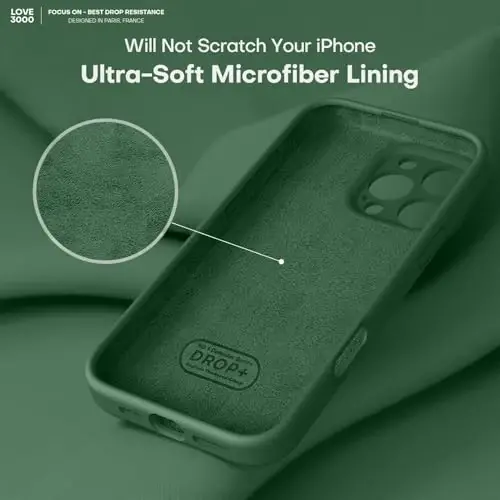 LOVE 3000 iPhone 16 Pro Max uchun mo'ljallangan g'ilof, [Yumshoq tirnalishga qarshi mikrofiber astar] bilan Premium silikon, erkaklar ayollar qizlar uchun zarbga chidamli himoya telefon g'ilofi 6.9", Yashil