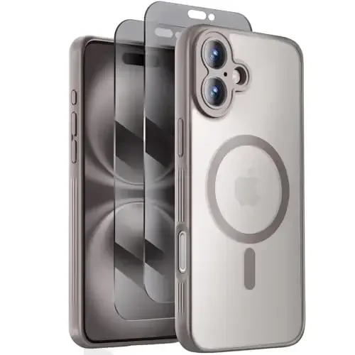 iPhone 16 uchun Symcele dizayndagi g‘ilof, MagSafe bilan mos, X2 Privacy Screen himoyachilari bilan, [Kamera himoyasi] [15FT tushishdan himoya] zarbga chidamli telefon g‘ilofi, 6.1", tabiiy titan