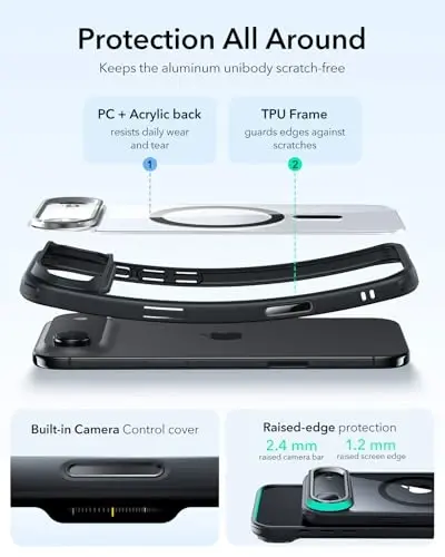 iPhone Air qurilmangiz uchun maxsus ishlab chiqilgan ESR for iPhone Air Case bilan tanishing! Ushbu g'ilof qurilmangizni har qanday zarba va tirnalishdan himoya qiladi, shu bilan birga sizga noyob foydalanish tajribasini taqdim etadi. ESR for iPhone Air Case MagSafe bilan mosligi, sozlanishi stendi va harbiy darajadagi tushishdan himoyasi kabi xususiyatlari bilan ajralib turadi. Shaffof qora dizayni telefoningizning asl go'zalligini saqlab qoladi, mustahkam tuzilishi esa uzoq muddatli foydalanishni ta'minlaydi. Suratga olishni yaxshi ko'radiganlar uchun maxsus ishlab chiqilgan kamera nazorati funksiyasi tufayli iPhone kamerangizni osongina boshqarishingiz va mukammal suratlar olishingiz mumkin. ESR for iPhone Air Case iPhone Air-ni xavfsiz saqlash va foydalanishni osonlashtirishning eng zamonaviy va amaliy usulidir. Kundalik foydalanishda yoki sayohatlaringizda telefoningizning doimo himoyalanganligini ta'minlaydi. Sozlanishi stendi yordamida video tomosha qilayotganda yoki video qo'ng'iroq qilayotganda qo'llaringizni bo'shatishingiz mumkin. MagSafe bilan mosligi tufayli simsiz zaryadlash moslamalaridan osongina foydalanishingiz va telefoningizni tezda zaryadlashingiz mumkin. ESR mijozlar ehtiyojini birinchi o'ringa qo'yadi va shuning uchun batafsil o'rnatish videolarini, tez-tez so'raladigan savollar bo'limini, keng qamrovli 12 oylik himoya rejasini, umrbod qo'llab-quvvatlashni va shaxsiylashtirilgan yordamni taklif etadi. ESR for iPhone Air Case bilan iPhone Air-dan xavfsiz foydalanishdan zavqlaning!