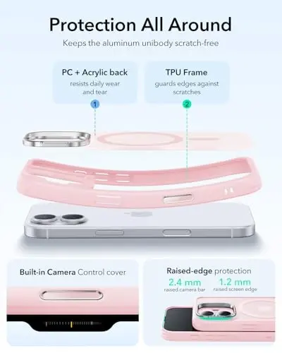 iPhone 17 uchun maxsus ishlab chiqilgan ESR for iPhone 17 Case with Stash Stand, Camera Control Cover qurilmangizni himoya qiluvchi va foydalanish qulayligini ta'minlovchi ustun xususiyatlar bilan jihozlangan. Muzli Bubblegum Pink rangi bilan o'z uslubingizga uslub qo'shsangiz, harbiy darajadagi yiqilishdan himoya telefoningizni kundalik foydalanish xavfidan himoya qiladi. MagSafe muvofiqligi simsiz zaryadlash tajribangizni tezroq va amaliyroq qiladi, kuchli magnitlar esa aksessuarlaringiz bilan xavfsiz ulanishni ta'minlaydi. Sozlanishi mumkin bo'lgan Stash Stand qo'lsiz foydalanish uchun ideal va 0 dan 85° gacha bo'lgan turli burchaklarda video tomosha qilish yoki video qo'ng'iroqlarni amalga oshirishdan zavq olish imkonini beradi. Kamera boshqarish funksiyasi sizga fotosurat sozlamalarini aniq va tezda sozlash imkonini beradi, chizishga chidamli orqa qopqoq esa telefoningizning uzoq vaqt davomida yangi ko'rinishini ta'minlaydi. ESR for iPhone 17 Case shunchaki qopqoq emas, balki iPhone 17 tajribangizni boyitadigan aksessuardir. Qurilmangizning uslubi va xavfsizligini bir vaqtning o'zida taqdim etadigan ushbu qopqoq kundalik hayotingizning ajralmas qismiga aylanadi. Ilg'or xususiyatlari bilan ajralib turadigan ushbu qopqoq telefoningizni zarbalar, tirnalishlar va boshqa tashqi ta'sirlardan himoya qiladi, shu bilan birga sizga foydalanish qulayligi va estetik ko'rinishni taqdim etadi. ESR sifati bilan ishlab chiqarilgan ushbu qopqoq uzoq muddatli foydalanish uchun mo'ljallangan va iPhone 17 bilan mukammal mos keladi. Muzli Bubblegum Pink rangi telefoningizga nafis va zamonaviy teginish qo'shadi, qopqoqning zamonaviy dizayni esa sizning e'tiboringizni tortadi.