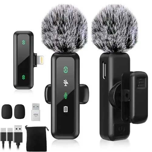 BOYLI FUNKSIYASI: BILIWAL 2 toʻplamli lapel mikrofon bilan iPhone/iPad yozib olish tajribangizni oshiring. Ham mikrofon ham qabul qilgich holati va qurilmalarni ulanish holatini vizual aks ettiruvchi status displeyga ega.