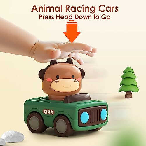 iPlay, iLearn Press to Go Car Toys for Toddlers 1-3, Baby Animal Racing Cars, Infant Play Vehicle Set, Baby Push Go Friction Car Toys for 6-9-12-18 Months, 1st Birthday Gifts for 1-2 Years Old Boys
