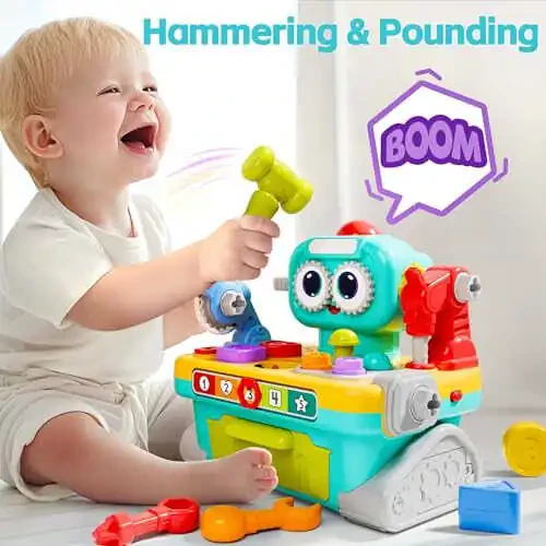 - Çeşitli Oyun Olanakları: Bebekler, çekiçle vurma, şekilleri sıralama, müzik çalma, dişlileri döndürme gibi çeşitli aktivitelerin tadını çıkarabilirler.