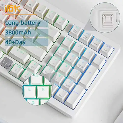 IROK FE98Pro, беспроводная клавиатура, RGB клавиатура, заменяемые переключатели, механическая клавиатура, игровая клавиатура, клавиатура с 98 клавишами, трехслойная система демпфирования, USB-C, 2.4GHz, Bluetooth, белая клавиатура, красная клавиатура