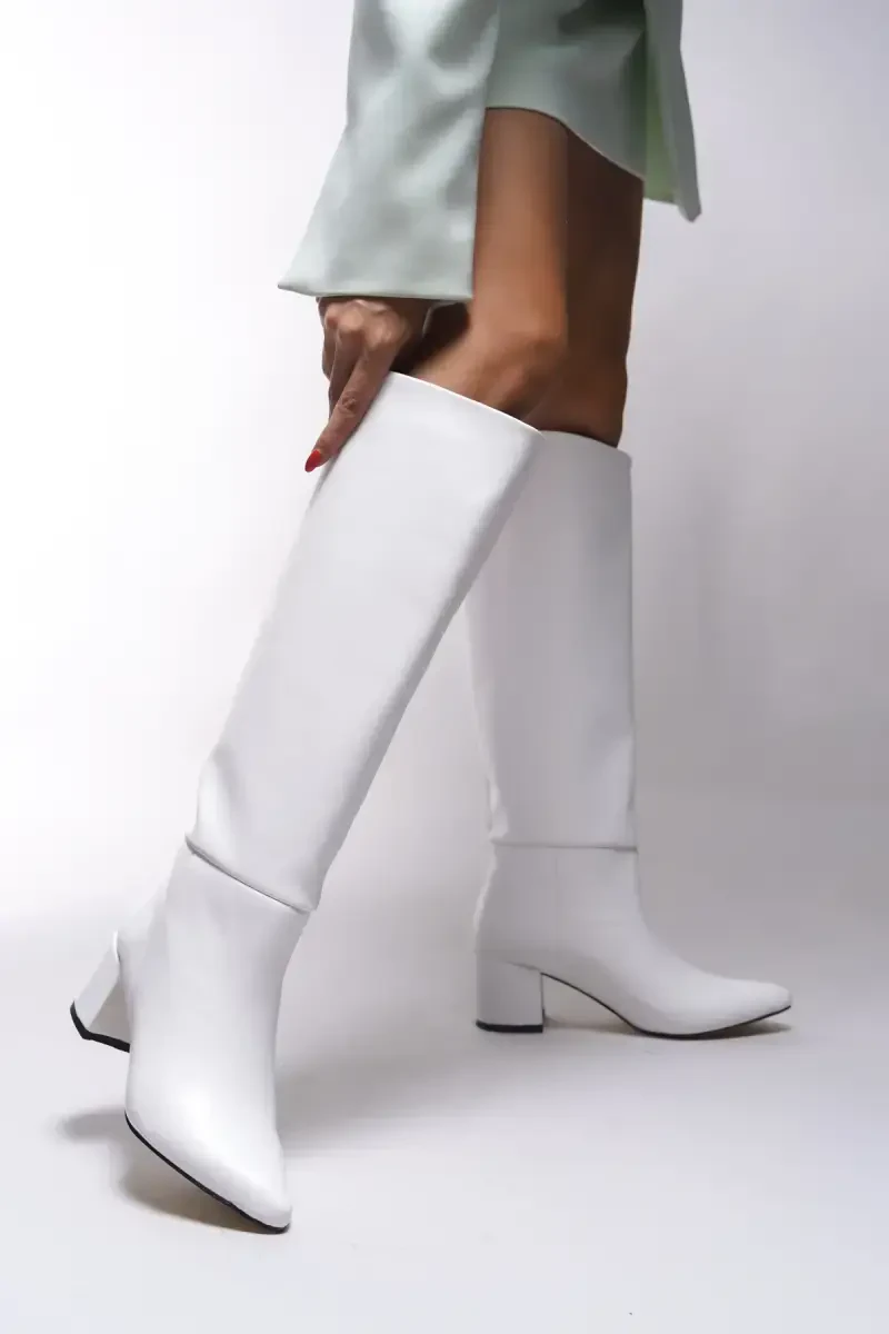 Iserolia White Leather Boots | 6cm Heeled Elegant Women's Boots