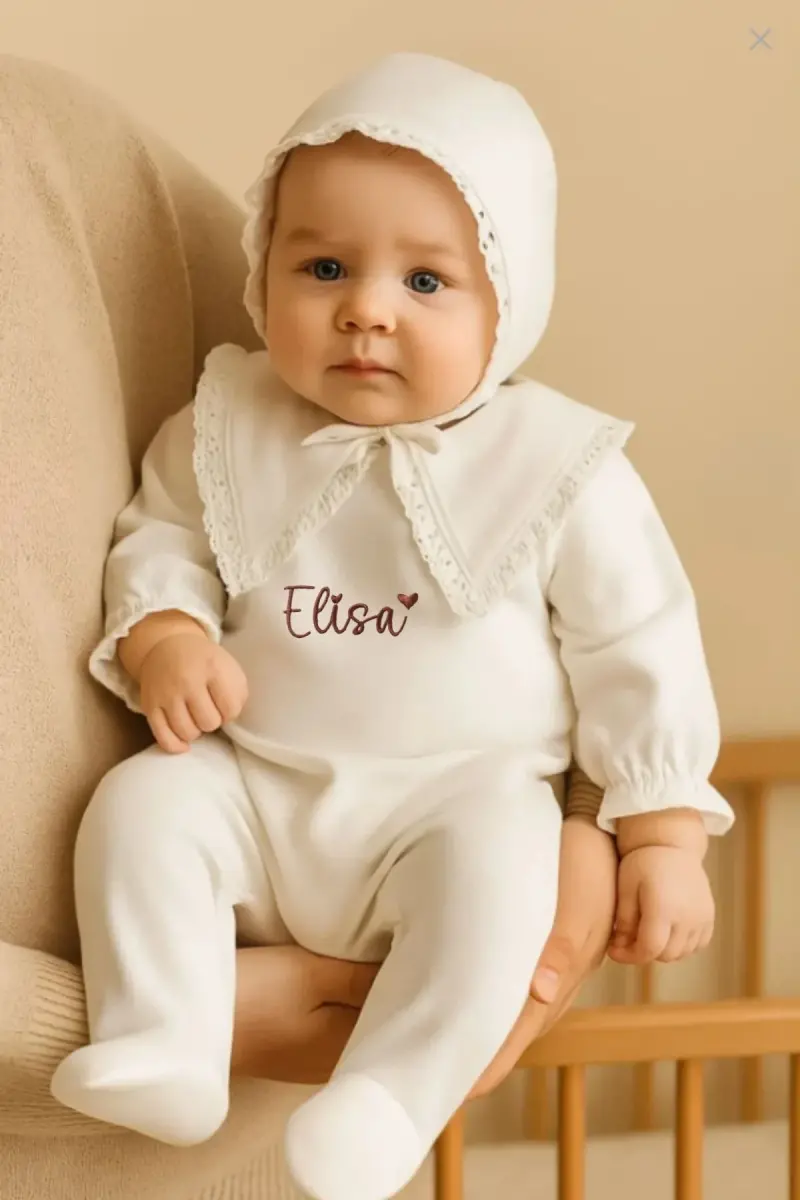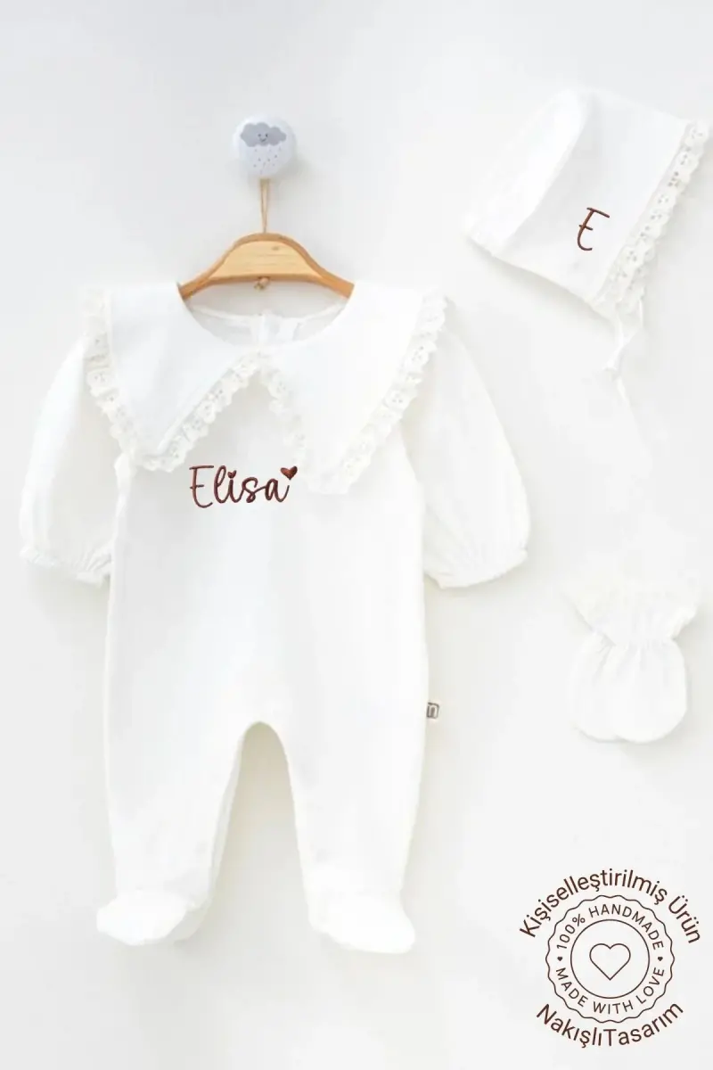 İsim Nakışlı Kız Bebek Yenidoğan Tulum Mevlüt Takımı Hastane Çıkışı Bebek Hediyelik-Beyazisimli