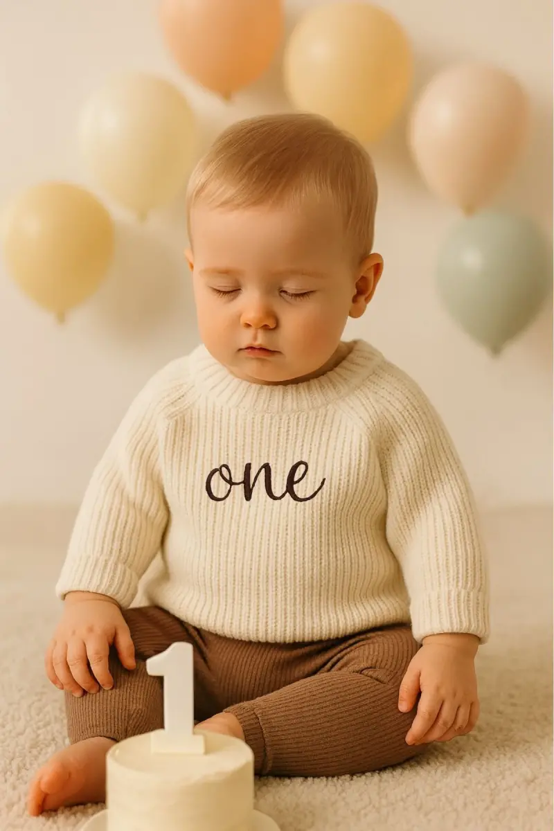 The Personalized Name Embroidered Unisex Baby-Children's Crew Neck Knit Sweater offered by Minytrendy adds a timeless touch to your little ones' wardrobe. This special design is ideal for both baby girls and boys, combining elegance and comfort. With its ecru color and name detail that can be embroidered on it, this sweater is not just a piece of clothing, but also a meaningful gift option. The soft knit texture gently touches children's sensitive skin, while the crew neck cut provides comfortable use. Thanks to its flexible structure, little ones can move freely and are not restricted while playing or exploring. The basic knit pattern offers a wide range of uses, from daily wear to special occasions, by matching any combination. The sweater is available in different sizes for children aged 6 months to 5 years. Being locally produced offers an important advantage in terms of quality and reliability. This special sweater, which can be personalized with your child's name, will make them feel special and will be an unforgettable gift. Moreover, it's a great option for taking concept photos! You can choose one or two sizes larger for a baggy look, or choose the exact size for a tighter fit. For newborn babies, you can start using the 6-12 month size after the 2nd or 3rd month. Produced with Minytrendy quality, this sweater is both stylish and useful.
