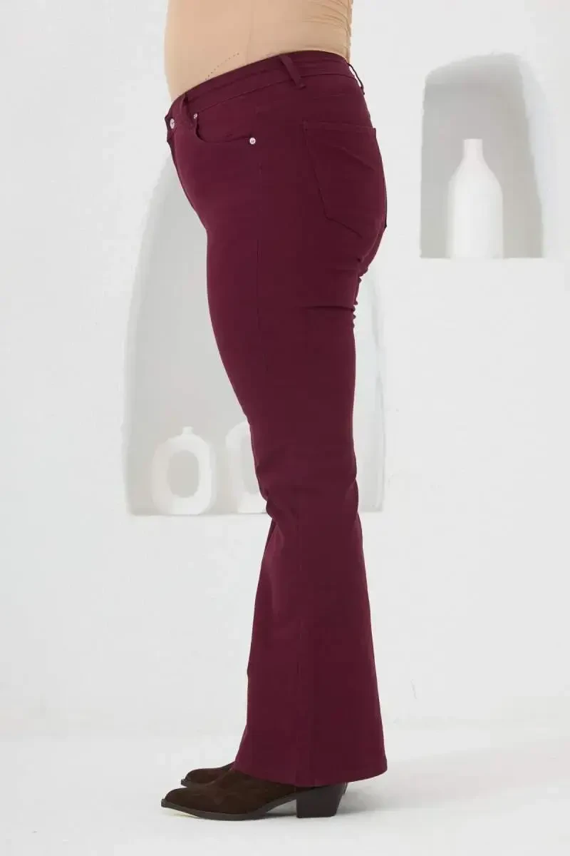 Бордовые хлопковые брюки-клеш большого размера имеют специальный дизайн, обеспечивающий стиль и комфорт и подходящий для любого размера. Натуральная текстура хлопковой ткани обеспечивает комфорт при ношении в течение всего дня, а благородный и элегантный вид бордового цвета подчеркивает ваш стиль. Крой в стиле «испанский клеш» позволяет создать современный образ, не ограничивая свободу движений. Завышенная талия делает вашу фигуру более пропорциональной и повышает уверенность в себе. Эти брюки можно носить как стильную альтернативу как в повседневных сочетаниях, так и на особые мероприятия. В офисе, на шопинге, на ужине или на встрече с друзьями — они помогут вам выразить свой стиль в любой обстановке. Благодаря эластичной и дышащей хлопковой ткани они сохраняют прохладу летом и тепло зимой. Качество ткани подходит для длительного использования и предотвращает такие проблемы, как выцветание или деформация. Бордовые хлопковые брюки-клеш большого размера — отличный вариант для вашего гардероба. Благодаря удобству сочетания с различными вариантами верха и обуви, они помогут вам всегда выглядеть стильно и ухоженно. Если вы не хотите жертвовать своим комфортом, выражая свой стиль, эти брюки для вас. Этот специальный дизайн, в котором вы найдете стиль и комфорт, которые ищете в женской одежде больших размеров, будет сопровождать вас в каждый момент.