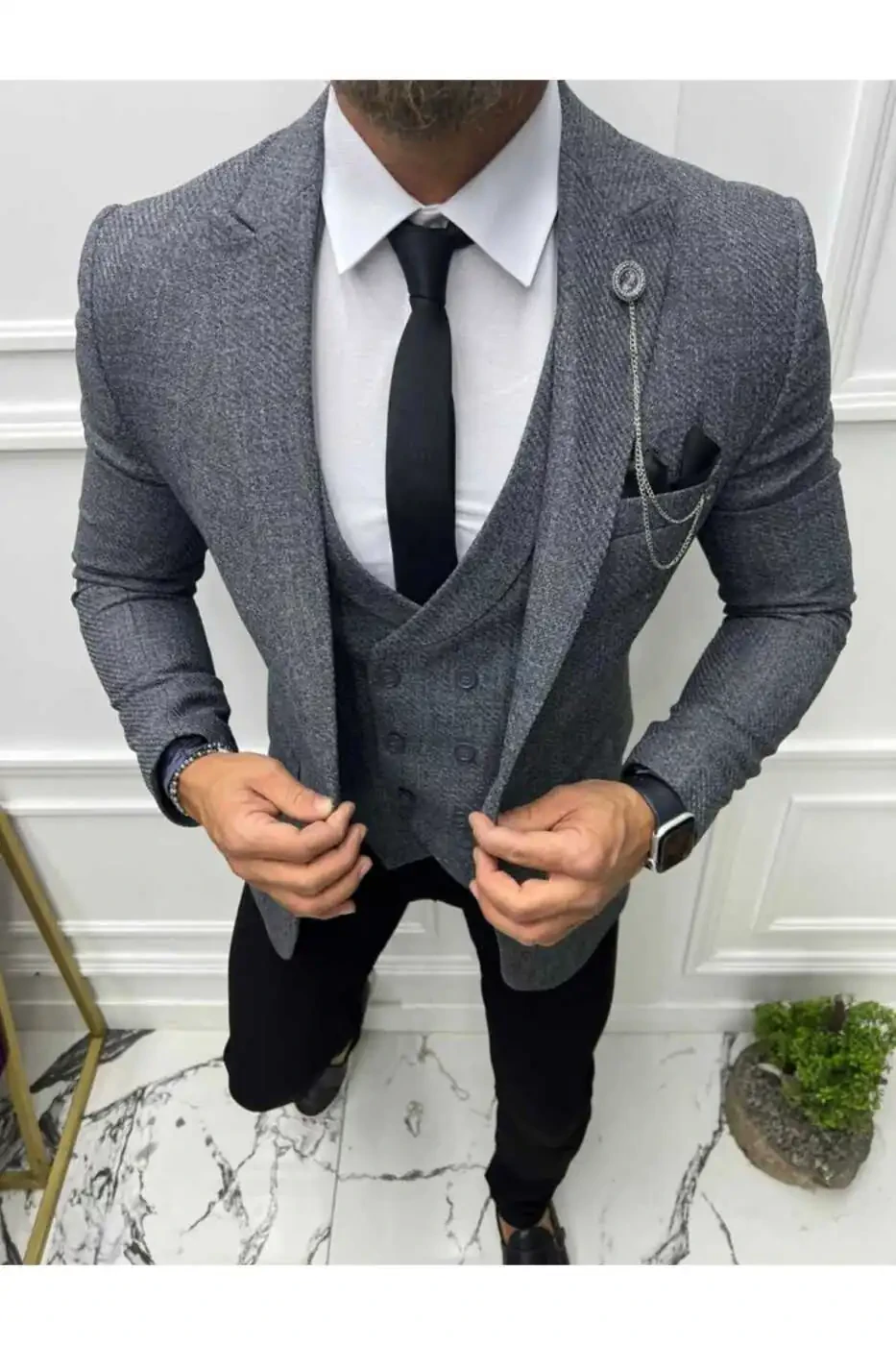 Italian Style Slim Fit Tailored Jacket Vest Combination Suggestions: