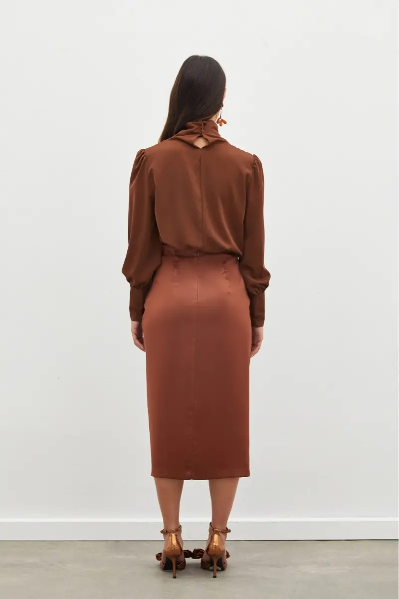 Юбка с драпировкой, атласная юбка, коричневая юбка, элегантная юбка, удобная юбка, юбка для особых случаев, повседневная юбка, атласная ткань, современная юбка, юбка