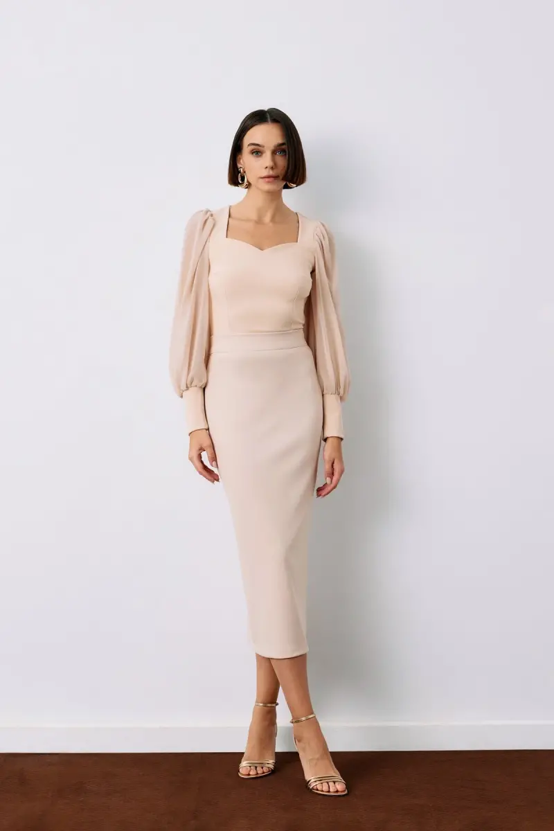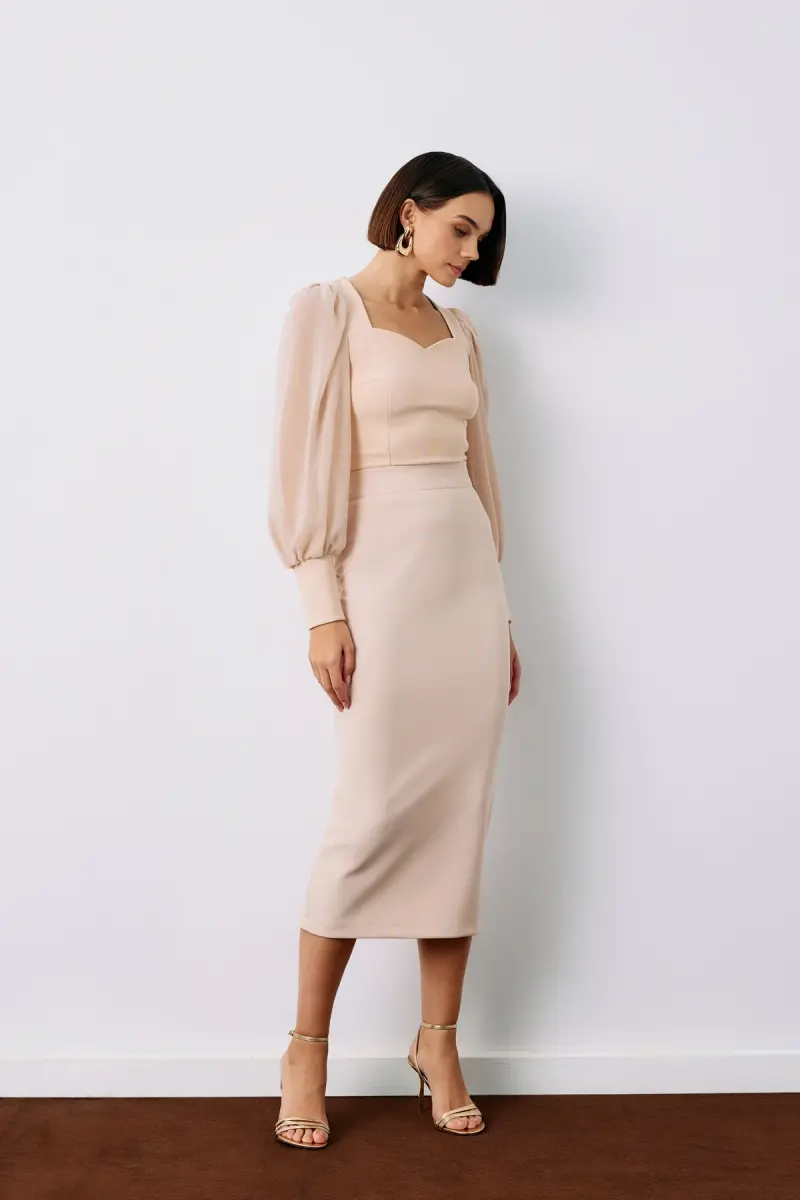 Юбка-карандаш миди - Бежевый