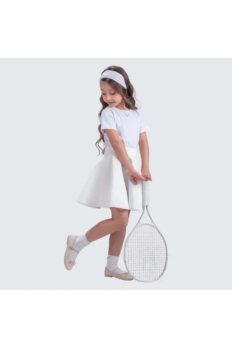 Юбка-клеш для девочек Scuba 23 апреля Mnk0565 Белая - Стильный образ для вашей дочери на 23 апреля