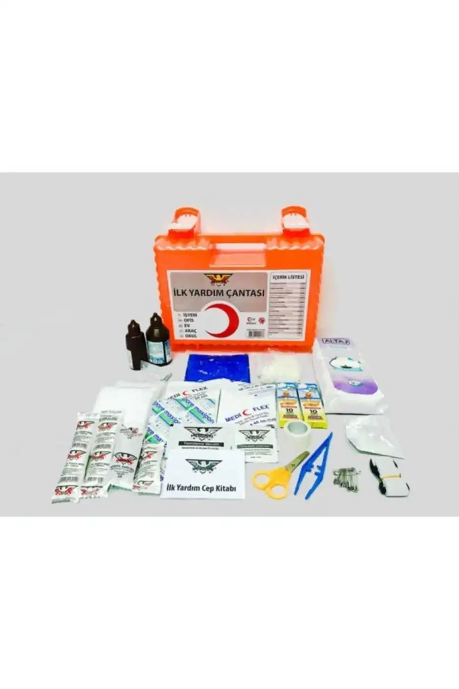 Bu ürün GÜMÜŞ ONLİNE OTO YEDEK PARÇA tarafından gönderilecektir.Kampanya fiyatından satılmak üzere 50 adetten fazla stok sunulmuştur.Bir ürün, birden fazla satıcı tarafından satılabilir. Birden fazla satıcı tarafından satışa sunulan ürünlerin satıcıları ürün için belirledikleri fiyata, satıcı puanlarına, teslimat statülerine, ürünlerdeki promosyonlara, kargonun bedava olup olmamasına ve ürünlerin hızlı teslimat ile teslim edilip edilememesine, ürünlerin stok ve kategorileri bilgilerine göre sıralanmaktadır.Bu üründen en fazla10 adet sipariş verilebilir.10 adedin üzerindeki siparişleri Trendyol iptal etme hakkını saklı tutar.Belirlenen bu limit kurumsal siparişlerde geçerli olmayıp, kurumsal siparişler için farklı limitler belirlenebilmektedir.15 gün içinde ücretsiz iade. Detaylı bilgi için[page="return_conditions"]tıklayın .Eagle iy 070 ilk yardım çantası, ilkyardım seti.Ürün özellikleri: - araç, iş yeri, ofis, ev ve okul gibi yerler için üretilmiştir.- plastik çantalıdır.- darbelere dayanıklıdır.- kutunun içerisinde bir adet bölme vardır.- isterseniz portatif, isterseniz de duvara montaj yaparak kullanabilirsiniz.- duvar montajı için çantanın üstünde vida aparatı bulunmaktadır.- üstten kilitlidir.Ürün paket içeriği: - sargı bezi (5cm x 150cm), 1 adet.- sargı bezi (10cm x 150cm), 2 adet.- üçgen sargı bezi, 2 adet - steril gaz kompres (30cm x 40cm), 1 adet.- steril gaz kompres (30cm x 80cm), 1 adet.- elastik bandaj (6cm x 100cm), 1 adet - flaster (2,5cm x 500cm), 1 adet - yara bandı, 20 adet.- yapışmalı yara pedi, 1 adet.- hidrofil pamuk (50gr), 1 adet.- tek kullanımlık tıbbi eldiven, 2 adet.- makas, 1 adet - çengelli iğne, 12 adet.- termojel sıcak/soğuk kompres, 1 adet.- klipsli turnike lastiği, 1 adetürün boyutları: En: 32 cm.Boy: 28 cm.Yükseklik: 13 cm.- medikal cımbız, 1 adet.- oksijenli su (100ml), 1 adet.- suni solunum maskesi, 1 adet.- alkollü mendil, 1 adet.- alkolsüz temizleme mendili, 1 adet.- ilk yardım cep kitabı, 1 adet.- plastik dübel, 2 adet.- vida, 2 adet.