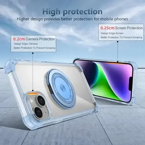 The IYTRRYH iPhone 14 Case offers a perfect solution for your phone by combining modern technology and superior protection features. Its MagSafe compatible magnetic structure facilitates your wireless charging experience, while the built-in 360° rotatable stand provides ease of use. Thanks to its military-grade drop-tested durability, it protects your phone against the risks of daily use. With its perfect texture and ergonomic design, it offers both a stylish look and a comfortable grip. In short, the IYTRRYH iPhone 14 case is an accessory that keeps your phone safe while making your life easier. This case is designed to provide maximum protection for your iPhone 14 against bumps, scratches, and drops. Its strong magnetic ring seamlessly integrates with MagSafe accessories, offering a fast and secure wireless charging experience. The built-in 360° rotatable stand allows you to fix your phone in horizontal or vertical position, providing the most suitable angle for watching videos, video calls, or other activities. The stand also makes it easier to use with one hand, helping you hold your phone more securely. Having passed military standard drop tests, this case absorbs the impact thanks to its 360° airbags and reinforced corners, preventing damage to your phone. The high-quality PC+TPU material offers resistance to scratches, fingerprints, and stains. This ensures that your case looks like new for a long time. The IYTRRYH iPhone 14 case is not just a protective case, but also an accessory that enhances the functionality of your phone and improves your user experience. With its stylish design, durability, and useful features, it is an indispensable complement to your iPhone 14.