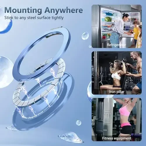 iPhone 15 Plus g'ilofi, MagSafe, simsiz zaryadlash, ekran himoyachisi, 360° stend halqasi, harbiy sinf, tushishdan himoya, zarbga chidamli, ko'k g'ilof, IYTRRYH