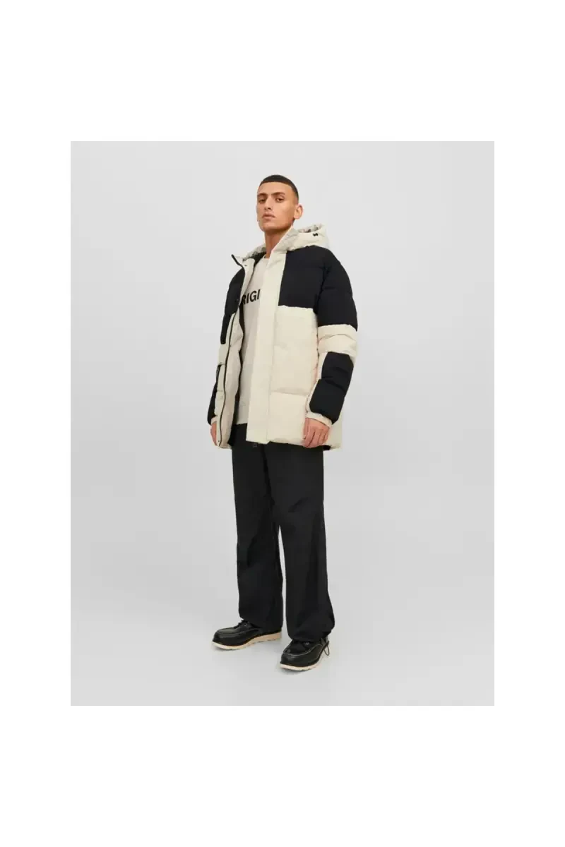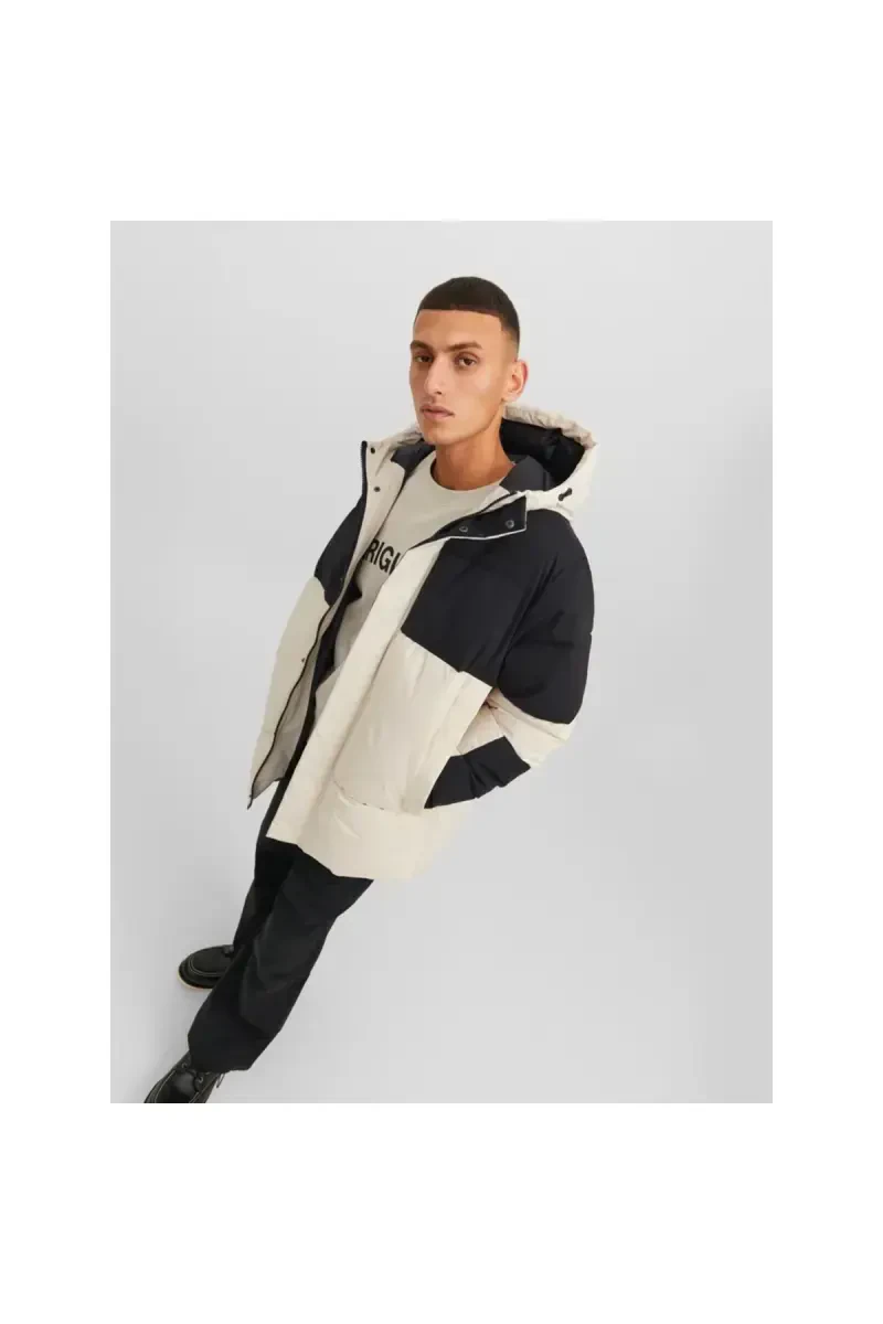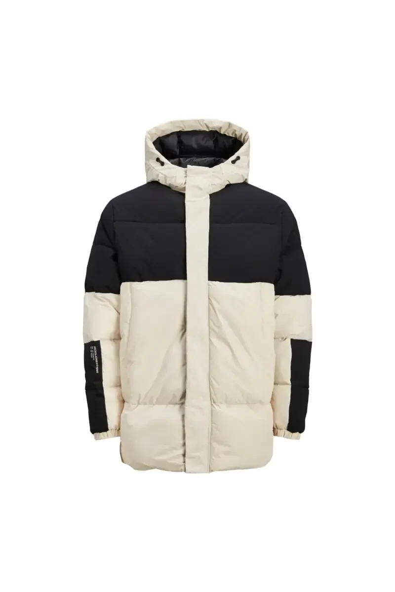 The Jack&Jones Force Puffer Sn Men's Beige Hooded Jacket is the perfect choice for keeping you warm and stylish on cold winter days, ideal for everyday wear and outdoor activities. Its comfortable and stylish design makes it adaptable to any style, and it stands out with its quality materials and functional features.