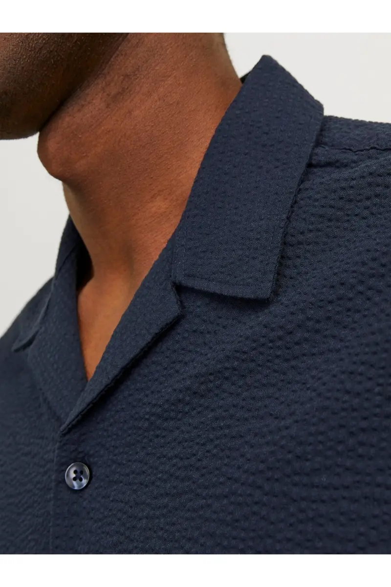 Combining style and comfort, the Jack&Jones Shirt Collar Relaxed Fit Short Sleeve Navy Blue Men's Shirt will provide you with a stylish and comfortable look during the summer months. Its soft and breathable fabric offers comfortable use all day long. The shirt collar detail complements the classic elegance, while the short sleeves help you stay cool in hot weather. Its relaxed fit provides freedom of movement, ensuring you feel comfortable all day long.